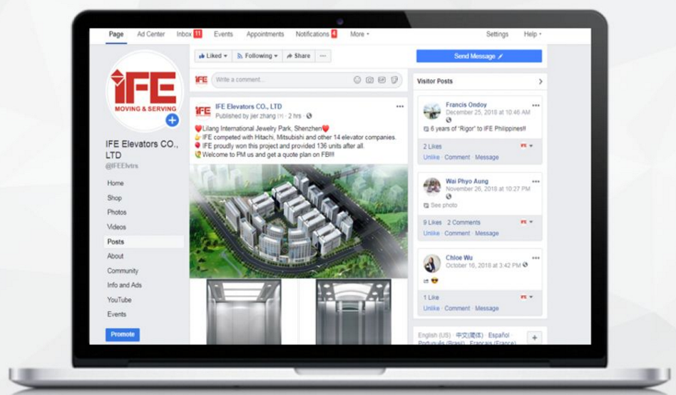 4.為快意電梯員工提供Facebook培訓,企業(yè)內部員工學會操作,以確保對詢盤回復及時。